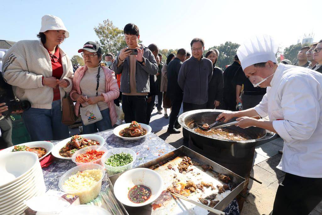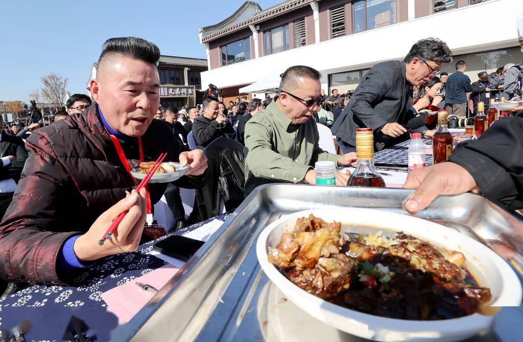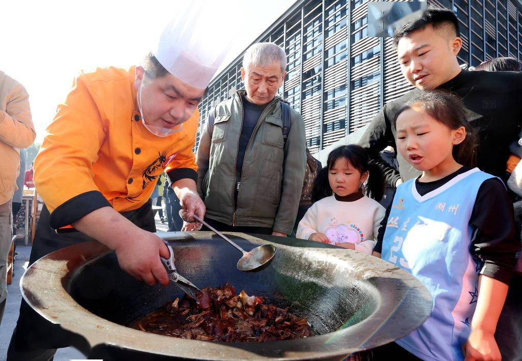 浙江湖州,旅客和市平易近预备品尝刚出锅的羊肉。德清县新市古镇羊肉大集现场,旅客和市平易近预备品尝刚出锅的羊肉。公共评委品尝羊肉。旅客和市平易近品尝羊肉。
