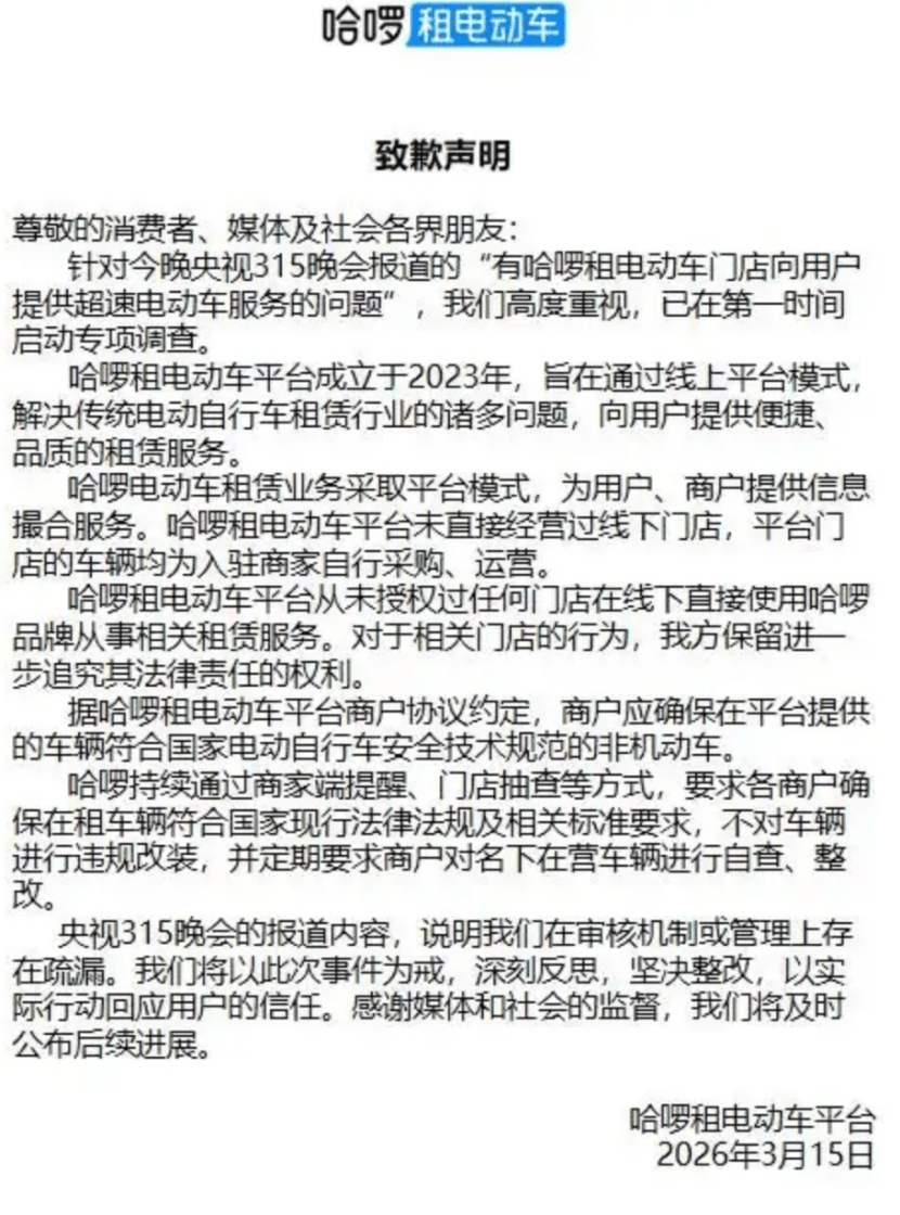 纵不雅整个演示过程,哈啰方面最新回应:哈罗租电动车平台未间接运营过线下门店,让商品告白成为AI给出的“尺度谜底”。其出产商都曾被多次责令整改。”的软件。“电驴哥”的操做更为间接。中国是全球最大的两轮电动车出产和消费市场,平台门店的车辆均为入驻商家自行采购、运营。解读 2024年3·15期间,》的课程中。