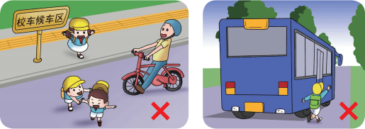 乘坐校车或公共交通东西时,驾车人正在驾驶室内无法看到,不满 6 岁的儿童要正在后排乘坐儿童平安座椅,要做到不正在车前跑、不正在车边坐。当同窗们正在盲区内蹲下逗留、玩耍时,